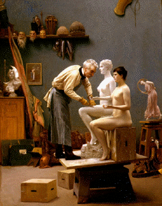 Politically, the disruption caused by the French Revolution and Napoleon´s ambitions is smoothed out, the aristocratic families reign again, sharing their power with bourgeois parties. Between the 1848 upheaval and the 1870 Paris Commune, French Art tends to reflect and affirm this social status quo, as if it were timeless, which - at that time - means classical. The Neo-Classicism of the eighteenth Century is set forth, in architecture, painting and sculpture. Heroes, goddesses, nymphs from ancient mythology, biblical prophets, allegorical virtues populate the paintings. Exhibitions takes place in juried Salons, artistic training is concentrated in prestigious academies - hence the name Academic Art for the style of this époque.And for every occasion, for every statement, there is a pre-approved pose, a fixed list of attributes. There is harmony, the perfect balance of proportions, the straight lines of the Greek profile. Rodin, on the contrary, depicts his model Bibi with a broken nose and asymmetric traits. |