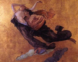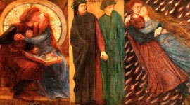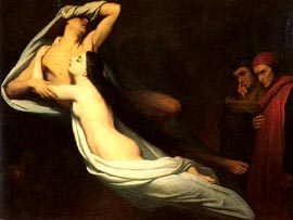 Like 'Fugit Amor', this composition is another version of the the love couple Paolo and Francesca, borne through the air by a strong wind in the Second Circle of Hell. The whirlwind that drives them around is like an expression of their unbridled desire and the turmoil of their emotions. In Canto V of Dante's Inferno, they are drawn to Dante and his guide, the Roman poet Virgil, and Francesca tells them their depressing tale. (See: 'The Kiss' and 'Fugit Amor'). The presentatation of the floating love couple, anxiously clutching to each other, had been a common subject in painting since Dante's 'Divina Commedia' grew popular.