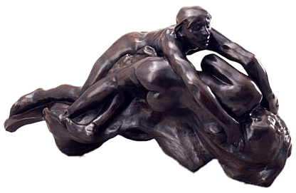 In the final version of 'The Gates of Hell', Rodin's unhappy love couple was placed directly underneath the group of 'Ugolino and his sons'. The way Paolo is grasping Francesca with outstretched arms is like a formal echo of the gesture of Ugolino's son, clinging to his father.