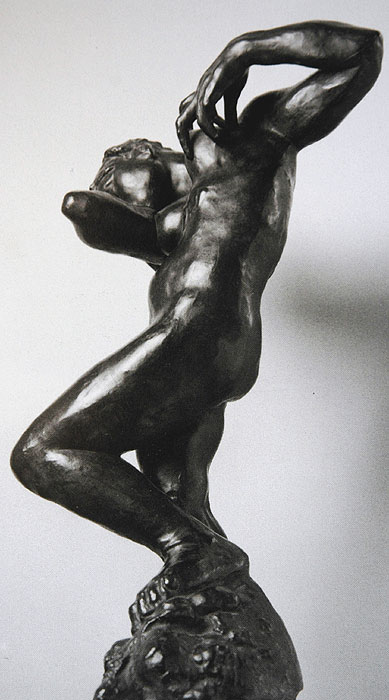 are in front of a completed whole which admits no complement." [R. M. Rilke, Auguste Rodin, 1928] This fragment was enlarged, shown in Paris in 1896 and cast in bronze during his lifetime. Rodin always preferred this fragmentary version of his 'Inner Voice': "The study of nature is complete here and I have made every effort to render art as whole as possible. I consider this plaster to be one of my best finished works, the most perfect (sic)." Many other fragments have followed in Rodin's artistic evolution. In 1910, he explained to Muriel Ciolkowska: "Recently I have taken to isolating limbs, the torso. Why am I blamed for it? Why is it allowed the head and not portions of the body? Every part of the human figure is expressive. And is not an artist always isolating, since in Nature nothing is isolated? When my works do not consist of the complete body (..), people call it unfinished. What do they mean? Michelangelo´s finest works are precisely those which are called 'unfinished'. Works which are called finished are those who are clean - that is all." [Quoted by Grunfeld, Rodin - A Biography, p. 573] |
