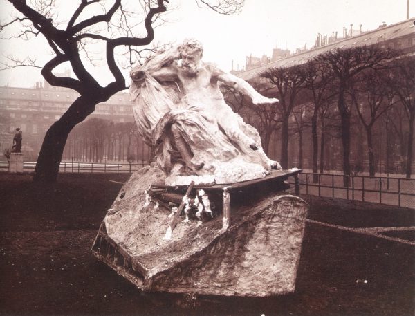 made shortly before -, In 1889, Rodin was invited to create a 'Monument to Victor Hugo', to be positioned at the north transept of the Panthéon in a large setting comprising 100 sculptures. The project had been conceived of by Edward Lockroy, to commemorate the great men of French history. Like the Calais Monument, it should help to restore national pride, after the shameful intermezzo of Bonapartism and the defeat of the Franco-Prussian War provoked by Bismarck. It was Rodin's second commission for a monument by the
